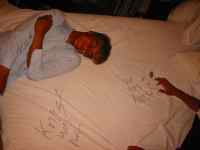 | Ratboy said if someone gave him some alcohol he would "eat those things." After a few mighty swigs of Bacardi he smashed the offending undies into his face and screamed out about how good they were! The group realized that they were missing out and a rumble broke out for possession of the unspeakables. Hair pulling, Banshee screaming, cartwheeling, have you ever heard of such a spectacle? | |||||||||||||