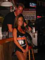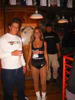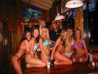 so in the beginning Sticky met up with Surfside Sports Mike Patzold and after getting some supplies for a few hooligan kids they walked over to Hooters where Mike was going to be a guest-judge in a bikini contest. They got to hang out while taking advantage of all you can eat lobster, crab and Hooter wings. Oh yah, and how about all you can drink too, yes. Everyone was drinking and laughing....then things started to get blurry for Sticky. Still holding his glass in hand he wavers, slighty yet enough that he gets a hug from the waitress strolling by. Peering over his shades Lopan looks up from his mug matching his eyes with the waitresses stride. Eying her, Lopan slowly raises the mug to his......eyyyy, what the hells going on. ...what....what the, well anyway Patzold pick his line and just about every girl heard "hey I voted for you, you're a winner, baby." at some time or nother. Sticky was put up front because of his camera and thats where the fantastic pics came from. Waking up the next morning Sticky knew it was the night of his life and who wouldn't say so, free lobster, free beer and bikini contests. God Bless Hooters. |