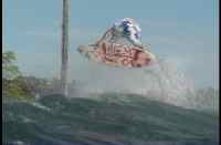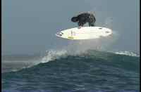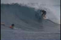 Finally reaching the islands everyone surfed Discos. All was nice and sunny until all of a sudden the wind was like a hurricane. Randy Bond's mattress flew off the boat and the dingy floated away into the break. Hoyer dove after the mattress and Antony (already in the line up) climbed aboard the ever more dangerously positioned dingy. The main boat, the Nusentara also drifted very close to the reef while everone scrambled into boat position. In the end all was well, the Captain swam to the dingy and floated it to the nearby island upside down to spare the bottom from the reef. Everything turned out ok though.