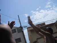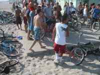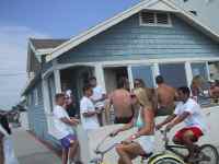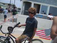 If you have seen "6 months in Wyoming" then you know about the fight at 34st. last fourth of July and you know I was waiting for a repeat for the next movie. I hung out there for a long time and it seemed like nothing was going to happen. Until Spruth and I got a hold on some huge beach ball. We quickly made up a nice game to play that went something like this: he would stand with his back to the boardwalk until we saw someone deserving of a whompin and then he would fling it over his shoulder as I videoed. Seemed people didn't like getting hit and before long a nice fight broke out with some old guy who didn't want to give the ball back. The guy then proceeded to claim 34st. as his street which made a few of the kids mad. Anywho...I buncha little kids got knocked around by some old guys until the cops came. |