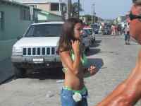 Twas a good day though. Everyone got to watch as unsepecting girls got blasted with water guns and hoses again and again. Little groms were trying to fight each other all day. I will have lots more pics to post from video. All these pictures are from the camera the Captain had while I had the video camera. But I will save that for next time cause now I'm off to Mexico with Tom Carey (Transworld photog-man) and a buncha East Coast Volcom peeps. |